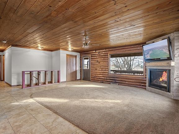 Discover the secluded charm of this delightful 3 bedroom, 3 bath, 2300 sq ft Log Home. 7+ acre wooded setting offers you a touch of country serenity yet still conveniently close to Hudson, River Falls & Roberts with easy access to I-94 & the Twin Cities area for all your needs. The St. Croix River, Kinnickinnic & Willow State Park are minutes from this country home. The property includes an abundance of Apple trees, a large blueberry patch, raspberries plus extensive walking paths leading back to the property. The chickens will be right at home in their own coop that includes electrical power. The garden enthusiast will enjoy the handy garden shed plus an outbuilding and lean to provide extra storage or work space. Several updates within the home include a new fireplace, furnace, lights, carpet along with a spray foam & insulated garage with heater & 220 power, water heater, paint, kitchen countertops, backsplash, new blinds & newly remodeled basement too. Exterior has new paint too.