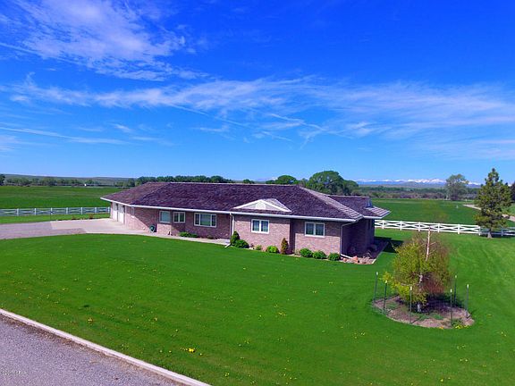 Come see this custom brick home located on the edge of town with views of the Rocky Mountains, small stream, and metal shop/storage building on 20 acres. The single level home has a spacious, open concept kitchen/dining/living area along with 4 bedrooms, 2 ½ baths, large laundry and central air conditioning throughout. The kitchen features granite counter tops, oak flooring, and dual wall ovens. The master suite includes a large bath and walk-in closet. The oversized, attached garage has gas heat. The yard has been well maintained and includes underground sprinklers and vinyl border fence. The 20-acre property is in alfalfa with a small pasture that has trees and a small stream for stock water. There are 3 water wells on the property and a natural gas well that supplies gas for the house. The 40' x 72' metal shop has cement floors, lights, work bench, overhead door and large sliding bay doors, well water and natural gas.