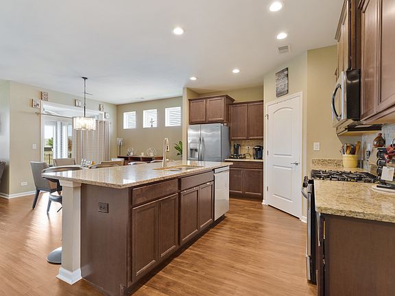 FABULOUS ARLINGTON MODEL OFFERING 2 BEDROOMS PLUS A DEN! OPEN CONCEPT WITH KITCHEN WITH 42" ESPRESSO CABINETRY, GRANITE COUNTERTOPS, EXPANDED ISLAND, PANTRY AND STAINLESS STEEL APPLIANCES! DINING AREA OPEN TO LIVING AREA AND A SCREENED IN PORCH - PRIMARY BEDROOM WITH WALK IN CLOSET AND FULL BATH WITH COMFORT HEIGHT DUAL SINKS AND TILED SHOWER - 2ND BEDROOM HAS A GUEST BATH JUST STEPS AWAY! FLEX ROOM/DEN - 2 CAR GARAGE - STONE/BRICK PATIO - BACKS TO BERM - LOW MAINTENANCE, PROFESSIONALLY LANDSCAPED IN THE CARILLON 55+ OR OLDER COMMUNTIY! ENJOY THE CLUBHOUSE, OUTDOOR POOL, TENNIS AND FITNESS CENTER! SO MUCH TO OFFER FOR THE ACTIVE ADULT LIFESTYLE! COME THIS THIS TODAY!