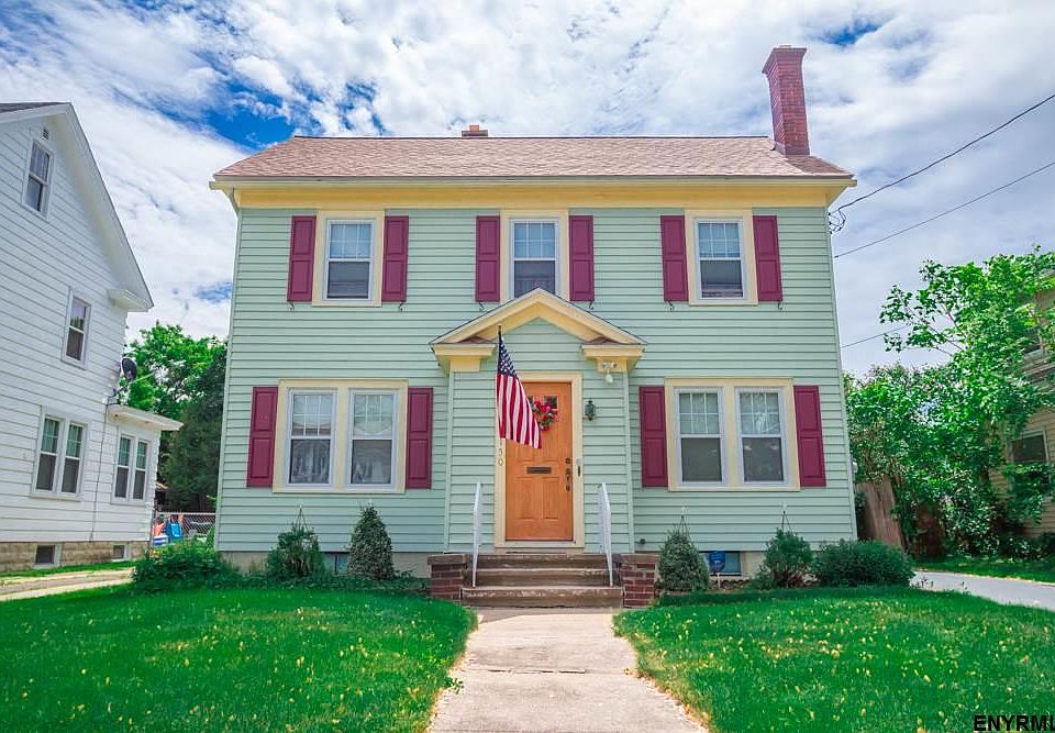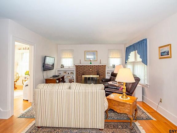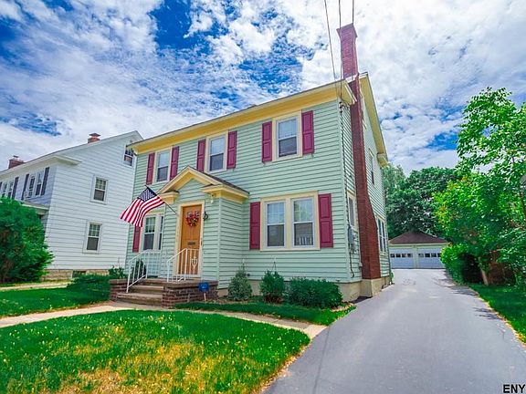 Lovely Colonial on desired tree lined street. This move-in condition home offers 3 bedrooms, 1.5 baths has been freshly painted, has hardwood flooring and newer windows through out. Living room features brick fireplace with built-in bookshelves, sun room with ample sunlight overlooking landscaped yard with patio. Formal dining room with corner built-in cabinetry, Remodeled Eat in Kitchen with granite counter tops, stainless steel appliances and ceramic tile back splash. Full basement, 2 car garage