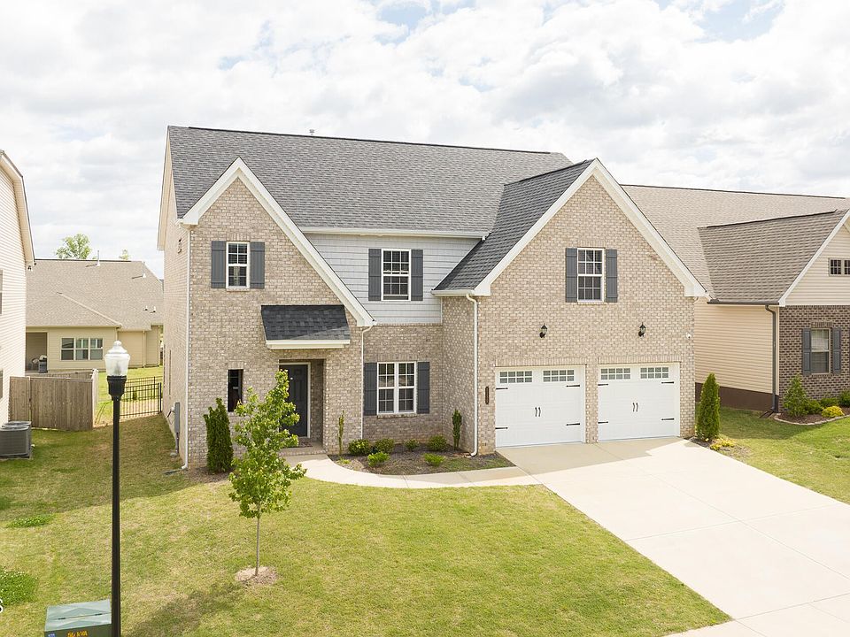 The second floor features a huge primary suite with a walk-in closet and a full-size bathroom with a 42'' Garden Tub/Shower Combo. Additionally, there are three more bedrooms, two bathrooms, and a laundry room.