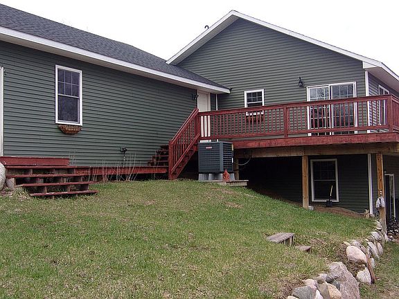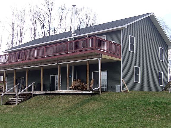 Beautiful 10 acres with a private setting. Flower and vegetable gardens, a big yard with lots of trees. The house is a ranch with a walkout basement. Both upper and lower levels have sliding glass doors that goes out to large decks. The upper level is a 3 bedroom, 2 bathroom, one being a spacious Master bedroom with Master bath and a jacuzzi tub, a large open concept kitchen, dining and living room. The lower level has 2 bedrooms and 2 bathrooms, with open concept kitchen, dining and living room and a wood burning stove. Both levels have their own laundry. Propane and electric (heat pump) and central air. there is a 32X40 attached garage and a 32X56 heated pole barn.