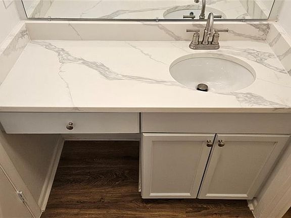 Modern lightingTree-top viewsPrivate back balconyCharming breakfast areaFreshly painted white cabinetsNew water saving toiletNewer granite countertops