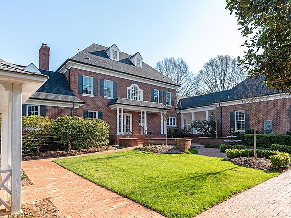 Georgian style with full brick and stately columns set on magnificent grounds, entirely fenced and a most peaceful setting. Mature trees flank the home and rear courtyard. Upon entering a grand stairwell greets you with formal living and dining on each side of the foyer. Open family room with fireplace, built-ins, casual dining & kitchen with access to covered breezeway which connects to the garage & rear bricked patio perfect for entertaining! Gracious owners suite on main level with updated bath featuring separate vanities, closets & coffee station. 4 Guest rooms and 2 baths on upper level. Recent renovations include new roof, HVAC, refinished hardwood flooring, fresh paint, new hardware, bathrooms, lighting and carpet. Optional office or bedroom on main level, 3rd floor unfinished attic space