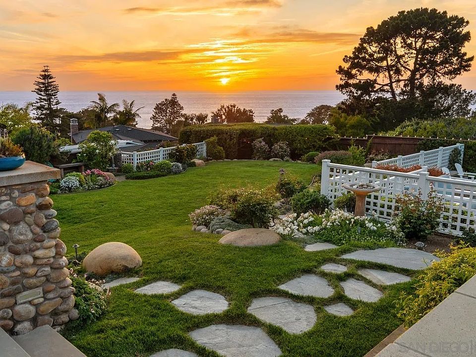 One of the Very Best streets in all of Old Del Mar! There is NOTHING quite like this with all usable land, privacy, protected Ocean Views and walk-ability! This quiet and private location is just steps to the village & beach. The quality is immense throughout and offers a timeless coastal look with great open living throughout, 150-year-old vintage wood floors, expansive lot with large pool / spa, gardens, privacy plus generous lawn area all overlooking mesmerizing Ocean Views. From your own backyard there is a private pedestrian gate that steps you a minute to the village, shopping and the beach. This exquisite home was recently & further upgraded with beautiful gourmet kitchen complete with sunset views from the kitchen sink. In fact, you will enjoy Ocean and Sunset views throughout the home and yard. Offering 5+bedrooms, 5,000+-SF, Detached Guest Home, generous primary bedroom with all new oversized spa bathroom and custom walk-in closet, there is Nothing Else That EVEN COMPARES! This truly is a one of a kind offering and you won't find the space, views and proximity to the village & beach in Old Del Mar like this again. We can't wait for you to see for yourself!