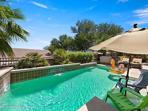 Shows like new! Extraordinary upgrades. Make this stunning Sun City Marigold model located in the delightful Reunion Valley neighborhood your Mesquite retreat! A sought after casita& 6' in-ground swimming pool, with water features, are great for entertaining friends and family. Curb appeal galore---unique pavers and bespoke, artistic coach lights in front courtyard. Large windows, framed by costly, custom shutters, provide exquisite views of your private pool and mature landscaped backyard. The nicely appointed kitchen includes upgraded granite, cabinetry with sliders, and newer appliances. Central vac is a great addition that works well on both carpet and tile. The main bedroom is large with a nicely designed en suite and large closet. The large guest bedroom has lovely outside views and an attached bath. You will love your backyard oasis! Also included is a stand alone spa. The oversized driveway leads to a 22' deep garage that can house trucks with an extended bed. Newly installed garage storage cabinets. This home is move in ready and has everything you need to begin enjoying the wonderful Mesquite lifestyle. Don't wait for new---this is the one.