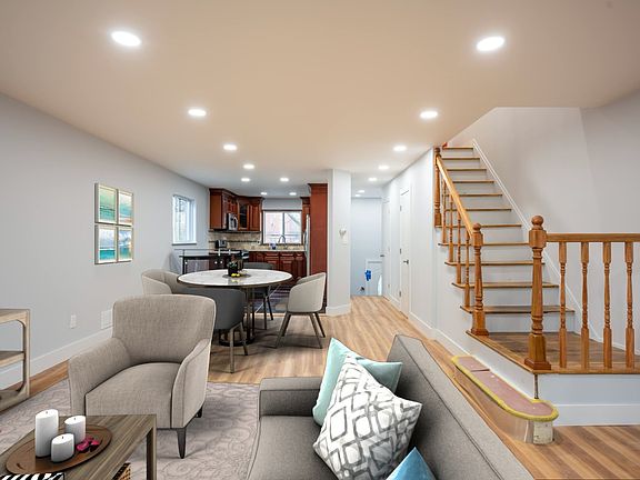 Tremendous 4 floor semi-detached home with a layout to accommodate 2 families! This home features hardwood floors, a built-in garage and your very own private driveway. The top 2 floors feature 3 beds and 2 baths, along with an open concept living, dining, and kitchen. You even have sliding glass doors that lead to a deck right off the first floor and into your enormous backyard. Below you have a third level consisting of another full bathroom as well as a space for a kitchen. To top it all off the property also has a fully finished basement complete with a large laundry room. These floors can easily double as a second apartment or can be used for extra space to accommodate the duplex. Right next to the fairway shopping center and all necessary transportation this property is a must see, call today!