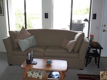BACK ON THE MARKET! This charming one bedroom, upper-level condo located in central Palm Springs, offers an easy walk to casino, convention center as well as downtown. Beautifully maintained common facilities and grounds feature two heated pools, spas and tennis courts. The bright and airy interior opens onto a front patio and master bedroom balcony with lovely mountain views. An open living/dining area, galley style kitchen with stackable washer/dryer provides for a care-free vacation destination. The furnishings, artwork and fully stocked kitchen are included per inventory.