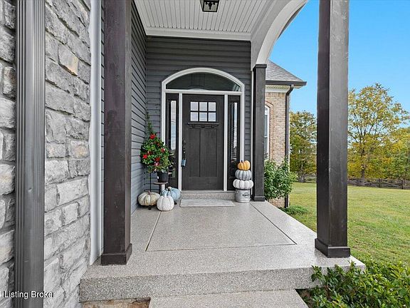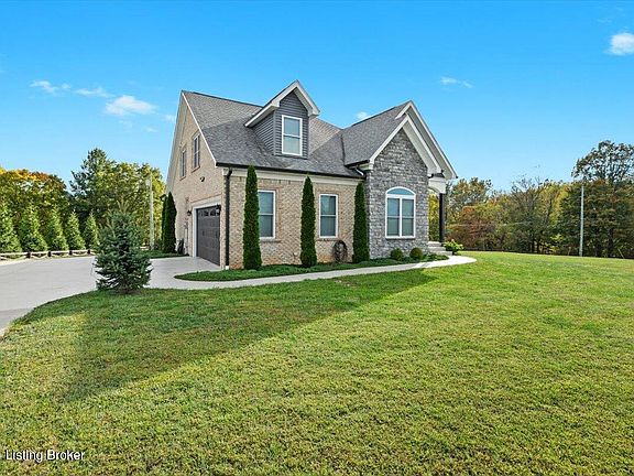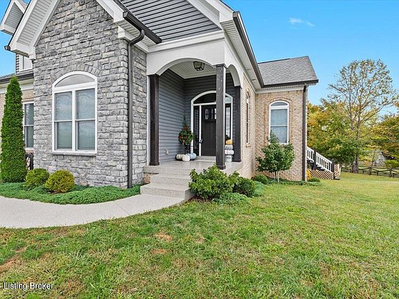 This is the home you have been waiting for! Stunning luxury custom-built two story home located in the highly desired area of Oldham County sitting on over 1 acre of land, offering the perfect blend of country living with convenient access to downtown LaGrange's restaurants and shops. This home boasts high ceilings and grand custom finishes creating a gorgeous aesthetic throughout. The spacious open layout includes a beautiful gas fireplace making the atmosphere so cozy. The large kitchen is equipped with a gas stove, custom white cabinets and a huge island with quartzite countertops. The primary bedroom is a true retreat, featuring a soaking tub, a walk-in shower, double vanity sinks with quartzite, and an expansive walk-in closet. Upstairs, the home has 2 large bedrooms and 1 full bathroom. Beautiful hardwood flooring throughout the main and upper level. There is also a spacious walkout finished basement with convenient full bathroom and another bedroom with large walk in closet. Fully fenced yard including a large 24 x 48 pole barn with full electric and water. Enjoy the view of the trees on the back deck giving true privacy and relaxation. Private front gate for secured entry. NO HOA! This home truly has it all. Schedule your private showing today!