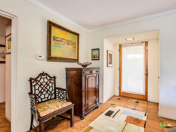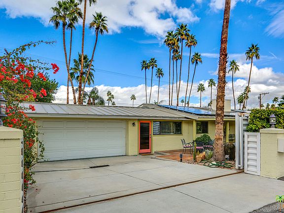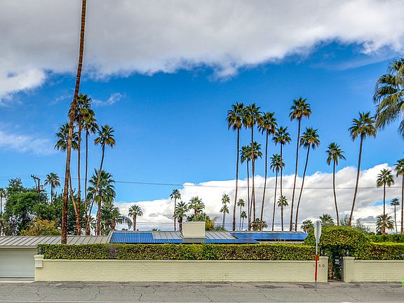 Upscale resort class living at it's finest! This classic 1948 Trousdale built California Ranch style residence is solar powered offers handsome finishes, refined appointments and marvelous attention to details. Boasting two Master en-suites at opposing ends of the residence, this sophisticated home is fully walled and gated to ensure the ultimate in privacy. Secluded private courtyards, lavishly scaled spaces, both public and private, generously proportioned walk in closets, lushly landscaped grounds, mantled fireplace and a light and bright chef's kitchen embellished with gas cooking and updated appliances. Just a few of the additional features include an attached, direct access dual car garage, 3 full baths, walls of windows/doors overlooking the renovated salt water and solar heated Pebble-Tec pool, custom ceiling fans, and a superb location just minutes to shopping, eateries and Palm Springs Airport. Move in, unpack and thoroughly enjoy! View the 3D Virtual Tour room by room.