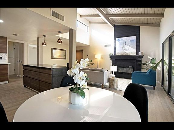 Chic 2-Bedroom Condo in Rancho La Paz, Palm Springs Welcome to your stylish retreat in the heart of South Palm Springs! This fully furnished 2-bedroom, 2-bathroom condo, located at 1150 E Palm Canyon Dr Unit 16, offers 1,307 sq ft of mid-century modern charm within the desirable gated community of Rancho La Paz. Interior Features: Spacious Layout: Enjoy a thoughtfully designed split-bedroom floor plan with vaulted ceilings that enhance the open and airy ambiance. Private Balcony: Both the living room and master bedroom feature sliding glass doors that open to an expansive covered balcony, perfect for relaxing or entertaining. Modern Kitchen: The galley kitchen boasts a wet bar pass-through, tile countertops, and is equipped with state-of-the-art appliances, ideal for culinary enthusiasts. In-Unit Laundry: A convenient laundry closet with a stacking washer and dryer is included. Community Amenities: Swimming Pools & Spas: Access to three well-maintained pools and spas for year-round enjoyment. Tennis Courts: Four tennis courts available for residents seeking an active lifestyle. Pet-Friendly Environment: The community features a pet park, making it a welcoming place for your furry friends. Additional Details: Parking: Includes a designated covered parking space within the gated parking area, along with ample guest parking. Lease Terms: Available for a 1-year lease starting March 1, 2025. First and last month's rent required to secure the unit. Rent is $3,200 per month. Utilities: Renter is responsible for gas, internet, and electricity. Pets: Cats and dogs are welcome. Location: Situated in the vibrant Deepwell Estates neighborhood, this condo is conveniently close to downtown Palm Springs, offering a variety of shopping, dining, and entertainment options. The community's prime location provides easy access to local attractions and the serene desert landscape. Don't miss the opportunity to reside in this exceptional condo that combines comfort, style, and a prime location. Contact us today to schedule a viewing and make this your new home! Lease Terms: Available for a 1-year lease starting March 1, 2025. First and last month's rent required to secure the unit. Rent is $3,200 per month. Utilities: Renter is responsible for gas, internet, and electricity. Pets: Cats and dogs are welcome.