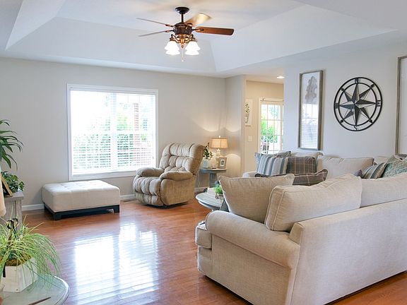 This 3 bedroom 2 bathroom single level home is located in the beautiful Eagles Pointe neighborhood. The fenced in backyard comes with a covered deck as well as a storage building! The kitchen is equipped with stainless steel appliances to match the modern white cabinetry.
