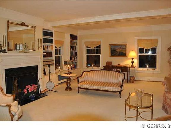 Elegant brick Georgian in the heart of the East Avenue Preservation District. 3,200 sf, 2nd floor unit with 2 huge terraces overlooking elegant grounds. Basement storage, 2 car garage parking. This unit looks like major NYC pre-war apartment on 5th or Madison Avenues. The very best of the best in all ways. Historic architectural details but new where you want it-kitchen, baths, and mechanicals. All in A+ condition.