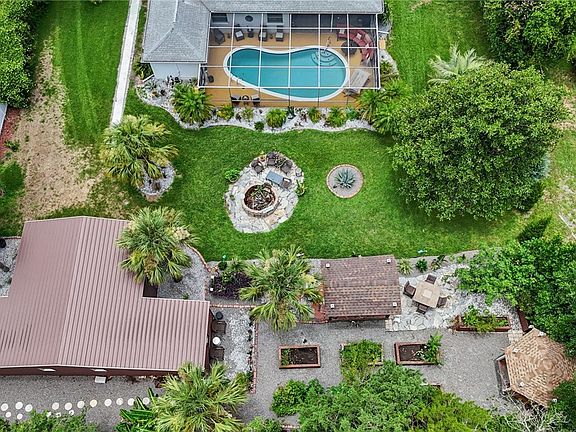 With a generous slate of places to hang out or entertain—spacious lanai, patio, inviting pool, gazebo, and stone fire pit- there's no getting bored in the yard of this captivating home. AND enjoy these features in privacy, thanks to the fencing of the large, attractively landscaped half acre yard.