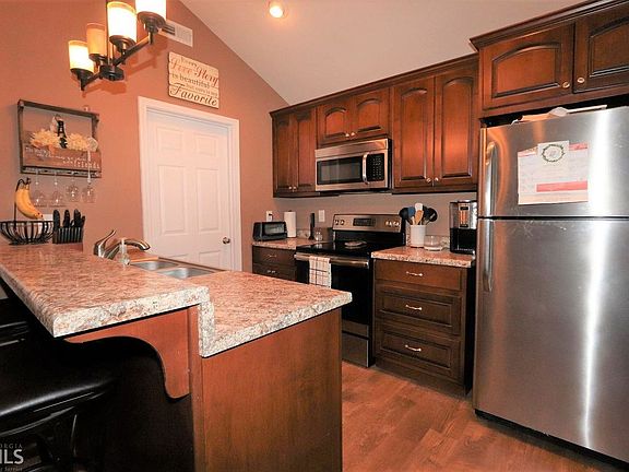 Carefree living here - just the right size! Two car garage on the main with plenty of space for storage, upstairs features kitchen that overlooks living room, bedroom that connects to nice bath with granite counters & walk in closet and scratch resistant pergo flooring. Excellent neighborhood, situated on 3.44 acres, mostly wooded, land lays well & is bordered by a nice stream. Covered front porch to enjoy the outdoors and also has a circular drive. Great place to live & great price to buy - call today for all the details!