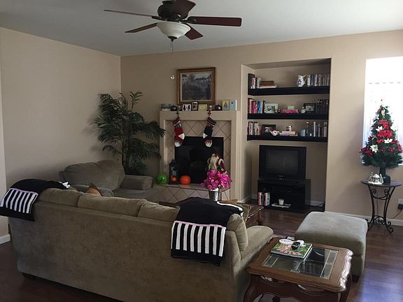 Immaculate home in sought after neighborhood. 4 bedroom with a loft, 3 Full baths, 3 car garage. Laminate flooring throughout. Family room has gas fireplace with built in bookshelves and opens to kitchen/nook area. Open Formal living and dining room. Master bedroom suite with fireplace, double sinks, walk-in closet, separate shower and sunken tub. Bedroom and full bath downstairs! New exterior paint. Fully fenced and landscaped. Large backyard patio area. Air conditioning/alarm/water softener included. Close to shopping and schools.