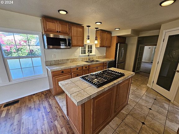 - Features: Builtin Range, Disposal, Instant Hot Water, Island, Updated Remodeled, Tile Floor