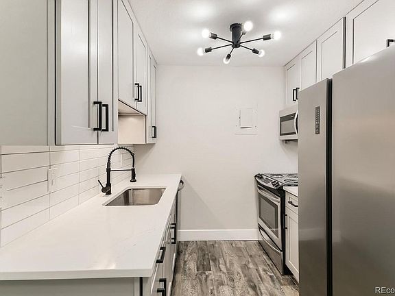 1 bedroom + 1 bathroom, 600 square foot apartment in Golden, Colorado. This condo was updated in 2022 with a full remodel including new doors/windows, updated kitchen and bathroom, and an in-unit washer/dryer. One assigned parking space is included with plenty of additional guest parking available. The unit is located on the 3rd floor (of 5 floors total) with a view of the community pond and adjacent foothills from the exterior balcony. Proximity to the Movement climbing gym, Apex park, and Jefferson County RTD station. Downtown Golden approximately 2 miles away and connected to the property via multi-use trail. Great for walking or biking into town! Appliances include electric range and exhaust hood, refrigerator, dishwasher, garbage disposal, wall/window AC units, and stacked washer/dryer. There is an enclosed outdoor storage closet off of the balcony. The neighborhood also has a clubhouse with a pool, hot tub, and sauna. The community center has a gym with an extensive amount of equipment available for use, as well as a community garden. Water, sewer, gas, and trash are all included. Tenants will need to provide electric and internet services. Unit has radiant heating and an integrated wall AC unit in the main living space. Window AC unit for bedroom space is also provided. Condo may be partially furnished or unfurnished depending on tenant preference. Please contact me to arrange a time to stop by for a showing. The unit will be available starting on 9/2/24, preferably for a 1 year or greater lease term. Availability and lease term are flexible depending on tenant needs. Dogs and cats are both welcome, with a maximum of 2 pets allowed in the unit. No smoking.