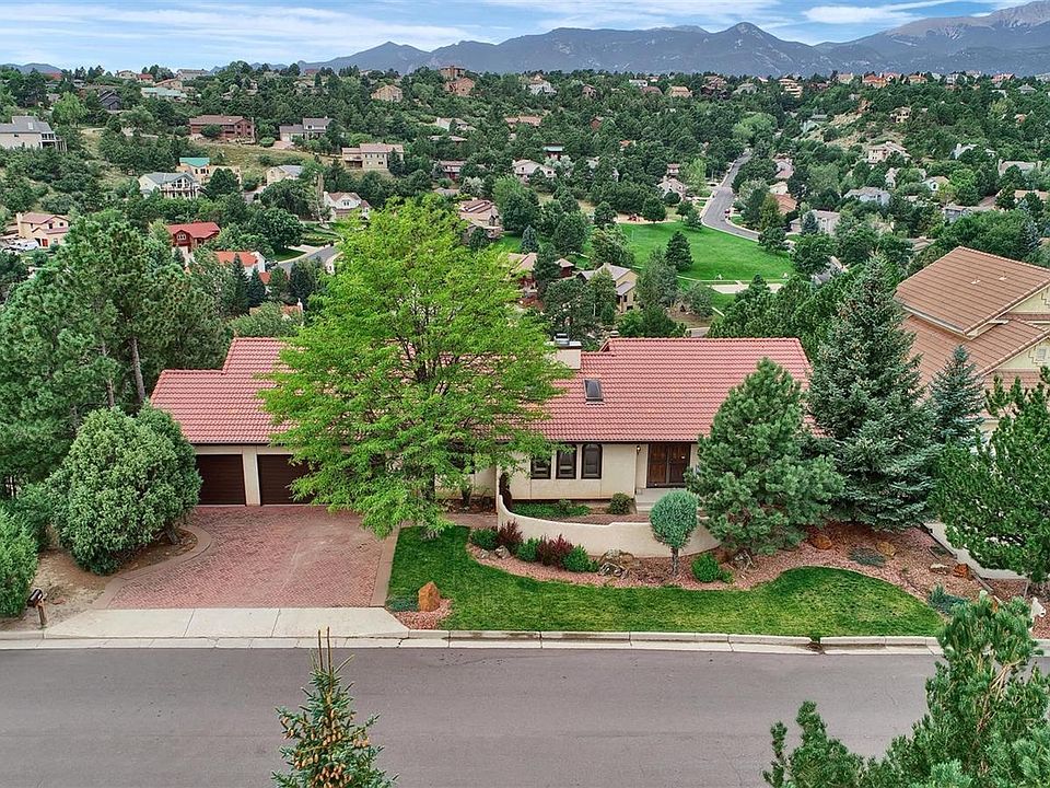Location, Unobstructed Views, and adjacent 300+ acre Ute Valley & Pinecliff parks! This spacious ranch home is located in an amazing neighborhood with great schools and expansive views of Pikes Peak where you can sit on your large deck and watch the sunrise or sunset on the mountains. Natural light and views abound from large windows, walk out basement, mature landscape and wildlife galore. Enjoy the 6 zone hot water heat, mini splits offer A/C, 2 master suites, oversize 3 car garage, 2 family rooms, greenroom, workout room, dark room, and quick and easy access to I-25. Must see!