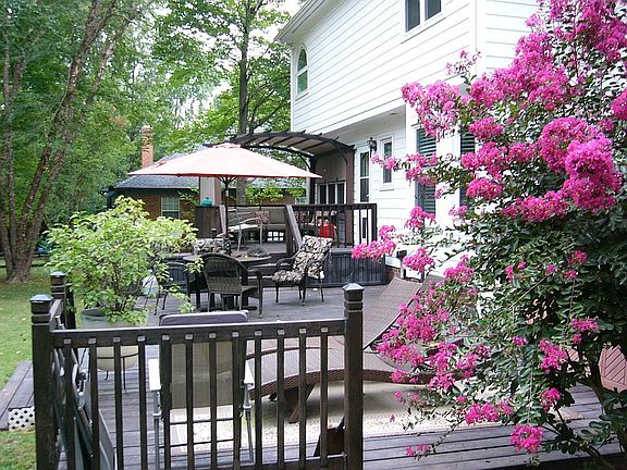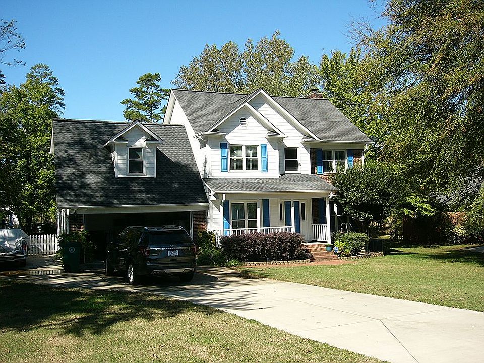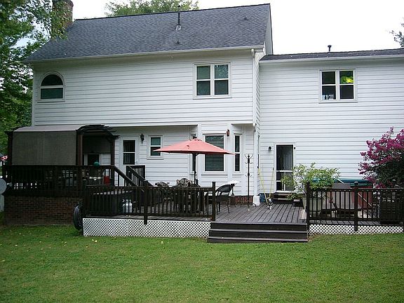 Wonderful neighborhood, no HOA. Great neighbors and a good walking neighborhood, convenient to 485. 2 story home with brick facing and wood siding, with all bedrooms upstairs, large bonus room that could be a 4th bedroom, all rooms have walk in closets. Master bedroom has a remodeled tiled bathroom with granite double vanity, spa tub and separate tiled shower with frameless door, with a water closet and large walk in closet. Laundry room is conveniently located upstairs, as well as a large linen closet. A large office and opposite dining room greet you as you enter the foyer. Livingroom has a gas fireplace and plantation shutters. Oak flooring and tile complete the floors downstairs. Kitchen has quartz countertops and a deep double sink, new stainless stove and stainless side by side refrigerator. Outside you are greeted with a large double tiered deck with a total of over 600 sq. ft. The level lot is fenced in, making it a safe environment for children and pets. There is a hot tub that conveys with the house if the buyer desires. There are blueberry bushes on the property that are bearing. The 2 car garage is attached and there is an extra parking pad that allows 2 extra cars to park, as well a parking in the driveway. There is a 10 by 16 storage building on the property, as well. The house has a French drain installed in the crawl space and automatic vents.