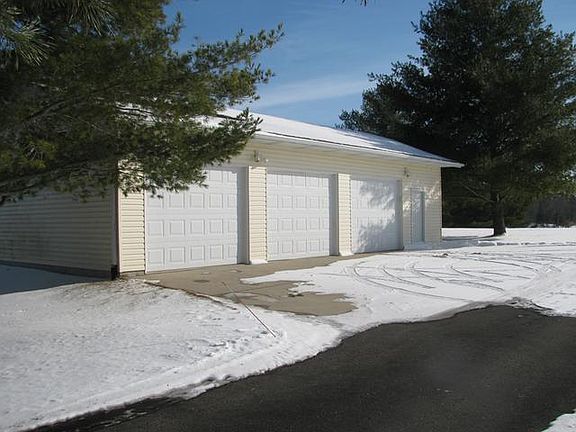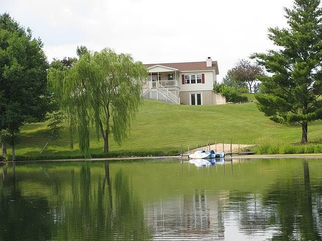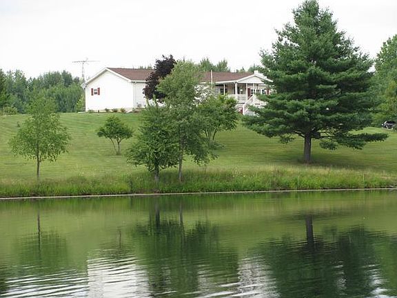 "A Piece of Paradise! With this immaculate ranch home setting on 10 acres, 500' Private Lake Frontage, 14x16 concrete patio with awning, New Skylights over kitchen work area and master bath. 2 car attached garage. Poured concrete unfinished bs'mt w/ walk out and 8' ceilings. LP 90% Trane Furnace/Central Air(2008). Wood Pellet stove in LR. TV antenna (45 channels including (ABC,NBC,CBS) Mature apple trees as well as young apple trees(fenced are apple, cherry and peach trees and grape arbor). Beach, Dock(2 wood & 3 aluminum sections) Small woodsy area, large lawn, tall grass area with young trees planted throughout. Lots of wild life, deer, turkeys, squirrels and seasonal wildlife such as ducks and swans. Large porch overlooking the lake. Paved drive. Great sledding hill and wonderful neighbors! Lots of custom built cabinets/drawers. 28X46 Detached garage with 1 heated bay!