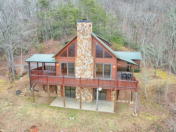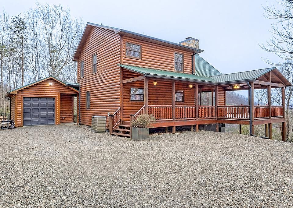 Run don't walk to this incredibly well-built and charming log cabin in Marble, NC, offering wonderful long-range mountain views and stunning sunsets!Enjoy almost 180-degree winter vistas from the spacious entertainment deck. The ideal end-of-road privacy makes it the absolute perfect refuge from the hustle and bustle of daily life. The primary suite is nestled upstairs, with a spacious main-floor bedroom and another bonus sleeping room downstairs. Conveniently located near Murphy and Marble amenities, this property is a total haven that adjoins Nantahala Forest service lands, ensuring highly desirable privacy. Some of the notable features of this home are: whole house water filtration, Lutron light switches, Pella doors, toy storage in the detached garage, projector in the entertainment room, fabulous fireplaces on both the main and terrace levels are just a few of the features that truly elevate this cozy cabin.