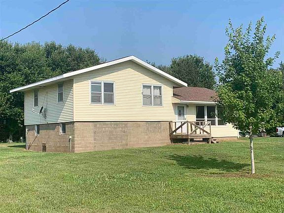 1.05 acreage just off the highway with an oversized two car garage with openers/remotes and 1 car leanto/carport. The house has a new Trane furnace and air conditioner. The kitchen appliances and washer/dryer are included. Open concept kitchen-dining-living area on the main floor. Two roomy bedrooms and a full bath with a newer vanity on the upper level with laundry. The lower level is a family room and a small room that could be a 3rd bedroom with a closet under the stairway. A second bathroom might be possible in the family room closet area. The mechanical room is on the lower level, too. The well pump is outside. The pressure tank was new in 2019 and is in the mechanical room. The water heater is about 8 years old. There is piping in the family room for an earth stove. The well is to the south, the septic and drainfield are in the north corner running east. The big front windows and the north windows are new. The tree lines and corn field define the property lines.