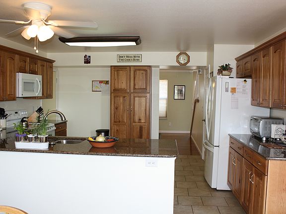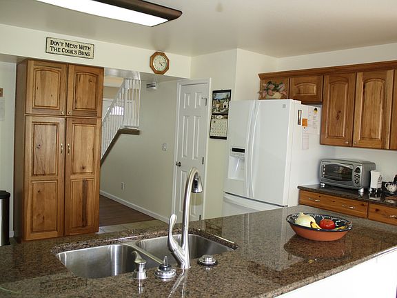 6 bedrooms, 5 baths, ample storage & over 3900sqft. On the main level you'll enjoy the master suite with walk-in closet and 5-pc bath, laundry room, formal living and dining rooms, extra large eat-in kitchen with breakfast nook & newer hickory cabinets with granite counters, and family room with gas fireplace. The graceful staircase in the entry leads to 4 bedrooms &; 2 baths on the upper level...all are good sized, and 2 are Jack & Jill layout. The finished basement offers ample recreation room, another bedroom, full bath and a extra-large storage/hobby/workshop. Summer's here, and you can take in the Pikes Peak views off the deck, or relax in the shade of the covered patio off the walkout basement.