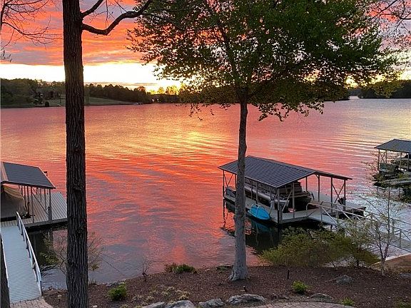 Welcome to The Battery on Keowee with amazing big water views and a deep water covered dock with slip and 2 jet ski ports. Enjoy the sunrise over Lake Keowee to get your lake day started from the covered porch, lower-level patio or inside the open concept home. This turn-key retreat has an open floor plan for gathering and entertaining that embraces the beauty of Lake Keowee. The main level living area offers amazing views of the lake through a wall of windows and multiple sliding doors to access the covered porch, maximizing your lake views and extending your living space. The wraparound deck, and covered porch on the main level give way to a lower level of additional outside living spaces designed for outdoor entertaining. A built-in gas grill with granite countertop on the covered patio, pavers and stone take you to various sitting areas and fire pit, as well as to the deep-water dock with 2 jet ski ports. Main level pine floors and exposed beams add character and charm to the home. A roomy master suite awaits you on the main level, complete with walk-in closet, double vanities with granite and a walk-in tile shower with tile floors. The main level has an additional half bath and small pantry. The lower-level great room with ceramic tile flooring and wet bar is perfect for gathering after a day on the lake. It's a comfortable space to relax, watch a movie or play games after an active day of water activities. A third “bedroom” with a full bath and closet awaits its guests. This lower-level “bedroom” does not have an egress. However, the exterior grade should allow space for that addition in the future, if desired. The upper-level loft bedroom offers another full bath, allowing each level to have a private bedroom and bathroom. The sellers elected to not add a wall in the loft allowing for a beautiful sunrise view. This could be modified in the future if the new owner prefers no lake view. The double car garage allows for tons of lake storage. The garage is insulated so it could double as an extra play space for a game of ping pong. There are several storage closets throughout the home, as well. There is parking in the drive at the garage, as well as a pad at the road in front of the garage. The space between the garage and parking pad has been landscaped to offer privacy for storing items. This two and a half story home maximizes gathering spaces for the prefect retreat with family and friends while providing functional and private bedrooms and bathrooms. The Battery on Keowee is a small, gated community on the south end of Lake Keowee across from the Keowee Marina. Its proximity to Seneca and Clemson makes it an ideal location for shopping, restaurants and medical services. Short term rentals are permitted, making it an investor's dream!