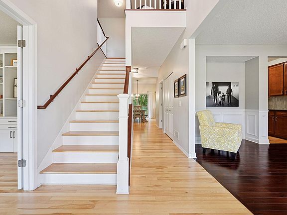 My goodness! Everything you need nestled on a gorgeous wooded lot with playable spaces and park down the street. Notice the darling curb appeal of this extensively updated home - inside and out - as you enjoy the landscaping and front porch (great for morning coffee or watching kids play in the neighborhood). Brand new siding, garage doors and roof give this home a beautiful, modernized look. Gracious entryway welcomes your guests with soaring ceilings and hardwood floors. Notice the convenient and quiet main floor office with built-in and French doors. Enjoy a gorgeous dining room with mahogany floors (presently a music room) which flows through into a helpful butler's pantry. Your kitchen is updated with modern dark stainless-steel appliances, new backsplash and amazing views. Your informal dining has easy access to your stunning and spacious Brazilian hardwood deck. The family room is anchored by a fireplace with updated stone, cypress mantle and built-ins - what a great place to relax after dinner! Main floor is rounded out with powder room and mudroom featuring laundry and helpful lockers. Upstairs you'll find a very spacious primary bedroom suite - so open it has room for a separate TV-watching area to decompress. Primary bedroom also features walk-in closet and refreshed primary bathroom (new faucets, lights, etc.). Three junior bedrooms upstairs make life so convenient - if you don't need them all, use one as a gym or second office. Junior bathroom is also refreshed. Your finished walk-out LL has so much additional space - with another bedroom (notice the Murphy bed), media room (with seating included), great bathroom and huge amusement room with electric fireplace and walk-up bar. Your backyard is simply beautiful - a place to play with gorgeous, protected views, and wildlife. Don't miss the fully insulated and organized garage that is EV plug-ready. Your neighborhood is a friendly enclave with a huge, fun park just down the street. Easy access to downtown Chaska, Target, Costco, Cub Foods, restaurants and more. Fun community events year-round in Chaska. Great schools and school choice.