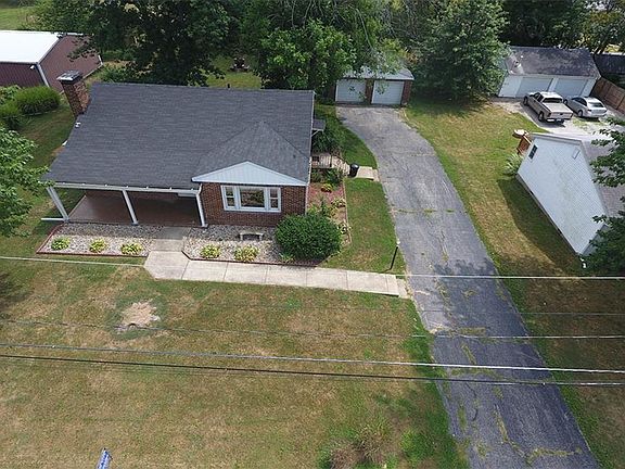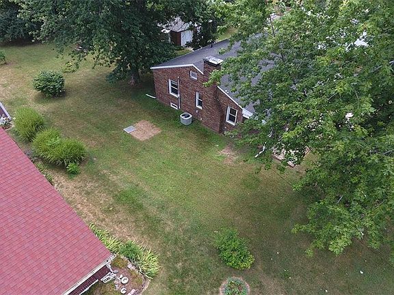 Brick 2 Bedroom Bungalow with walk-up attic. Newer Kitchen Cabinets, Nice Dining Room. Large Living Room with wood Burning Fireplace. Furnace and Central Air replaced in 2014. Some Replacement Windows. 2 car Detached Garage. Huge Yard (.77 Acre) Home Warranty being provided for buyer.