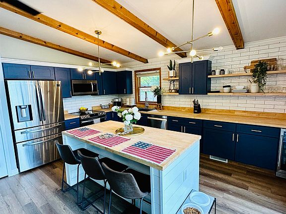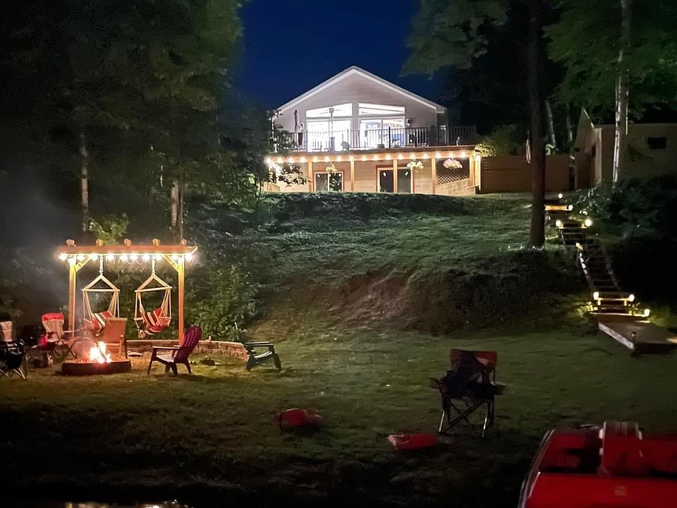 From the minute you drive up you won't want to leave this pristine lakefront home! It's the perfect place to relax and enjoy the gorgeous views, whether you're lounging on the patio or enjoying a day in the water. The house is immaculate and updated with new paint, flooring, and doors throughout. It has two main-level bedrooms with one having its own private bath, plus two bedrooms in the finished lower level so everyone can spread out. Living room on the main floor and a family room in the walk out basement provides plenty of space for everyone after a long day outside and relaxing in the air conditioning. Your family will love cooking meals together in your beautiful kitchen with all new stainless appliances (refrigerator, range/oven, microwave, dishwasher and built-in wine cooler). You'll love how open and bright the home is with the natural daylight from all the windows. You'll be able to enjoy plenty of al fresco dining on your deck or patio because this home sits on a slight hill that offers an incredible view of the lake. The yard is fenced in so your furry friends can run around without worrying about getting lost. There are also lots of other fun features like a fire pit, large sauna and an 8-person hot tub! Property comes with pontoon, kayak, paddle boat, dock and dive platform and plow truck. Plenty of wildlife abound ranging from moose, deer, eagles and partridge. Whether a year-round home or a seasonal cottage, summers will be magical here and so many memories will be made!