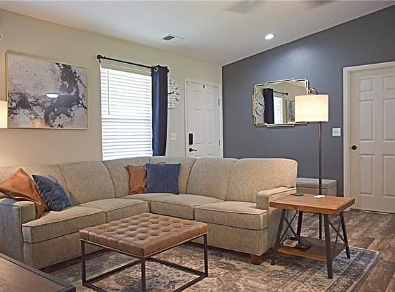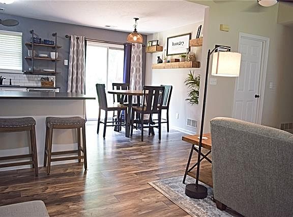 Updated & sleek 3 bedroom 2 bath home ready for you! This home is remodeled with refreshing & elegant finishes! Walk through the front door to an open floor plan with a cathedral ceiling giving you that roomy and airy feeling! Home has gorgeous wood flooring, updated ceiling fans & newer window blinds. Watching the kiddos or entertaining is enjoyable with the must have open floor plan and seating at the peninsula island. Kitchen also has floating shelving & HUGE pantry! All bedrooms are spacious and have large closets. Master bedroom is spacious and has 2 large closets! Master en-suite has updated vanity, ceramic tile flooring and ceramic walk-in shower. Walk through sliding glass door off the dining room and enjoy large deck overlooking spacious, manicured fenced in backyard with firepit! Backyard and around the home has beautiful landscaping! Garage looks small, but seller can fit her Equinox inside with breeze!