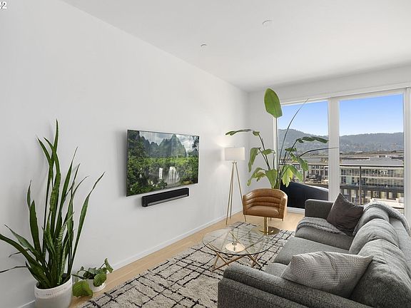 A modern, light filled home in the Pearl's newest building, Vista. This 1 bedroom + den features an open floorplan, high ceilings, wide plank oak floors & tons of storage. Primary bedroom with hardwood floors & walk in closet with custom organizers. Kitchen features modern European cabinetry, quartz counters, large island with storage & Bosch appliances. Covered patio with westerly views of the hills & city beyond. Full time concierge, gym, community room & 2 guest suites! 1 parking & 1 storage.