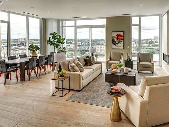Stunning contemporary top floor penthouse. Breathtaking 180 degree views to the N,E and W. Two bedrooms and huge den/possible 3rd bedroom. Located at the top of the new Vista Condominium in the desirable Pearl District, this unit has European white oak floors, gas fireplace, Wolf appliances and Quartz counter tops. Amenities include concierge, outdoor terrace with fireplace, two guest suites, two indoor parking spots and large storage unit.
