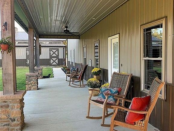 Horse property like you have never seen. Beautiful Barnominium with theater room upstairs. Corner patio, walk in heated and cooled garage. 3 stall barn attached to 60 x 40 shop with 11 x 18 office all with electric and internet. 50,000 gallon heated saltwater pool with covered cabana, stainless L shaped bar sink and refrigerator and full bathroom between 2 ponds with a third pond down the hill. Three pastures and 60 foot round pen. Nestled between 2 creeks with a lot of trees for the wildlife. Turkeys, deer, geese, raccoons and a variety of birds. Neighbors are nice also.