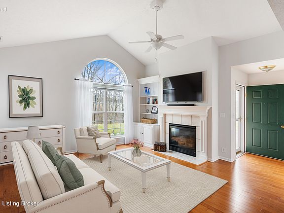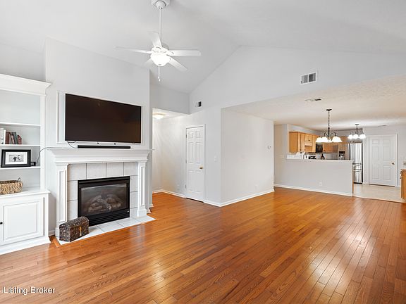 Lovely patio home in desirable Springhouse Estates Phase 2 is a dream come true! Original owners have maintained and improved this home to the max featuring many upgrades not offered in other units. Upon entering you will be greeted by gleaming hardwood floors which continue throughout the living room, dining area, hallway and first floor bedrooms. Gas fireplace with flat screen TV above (which can stay) and custom built in cabinets are sure to please. Vaulted ceiling and tons of natural light make for a cheerful and welcoming home. Kitchen features newer stainless steel appliances, tiled back splash and a wall of added custom lower and upper cabinets providing lots of prep area, coffee station, serving area or just a place to display your favorite ceramic pieces. Convenient laundry room complete with washer/dryer, handy storage cabinet and screen door out to the spacious 2 car garage. First floor large primary bedroom with ensuite full bath, 2nd large bedroom and 1/2 bath finish up this level. Upstairs is a spacious bedroom, full bath, large closet and shelving. Seller added additional air intake for improved heat and a/c flow. Nice patio and retractable awning provides awesome space for outdoor seating. Newer systems include heat, air, hot water heater and HOA replaced roof 5 years ago. Transferable home warranty is paid through 2025. Enjoy easy living with exterior maintenance included in HOA. Make this beautiful home yours!! Call now for your private showing.