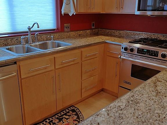 Extensively remodeled and aesthetic condo w/maple floors & cabinets, stainless steel kitchen appliances, granite tile counters, custom lighting. Two bedrooms up with walk-in closets and bathroom w/clear glass shower door, tile counters and flooring. Lots of storage! Main level w/1/2 bath, built-in speakers, free standing nat gas stove adds to the ambiance. Prime location bordering common area and overlooking city ponds, mountain views. Deck plumbed for gas grill! Can it get any better?