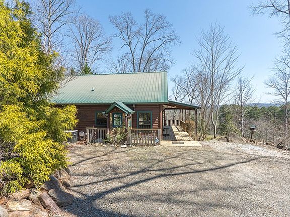Picture cozy evenings gathered around the outdoor fire pit, exchanging stories under the starlit sky. With a flat yard boasting stunning mountain views, this property offers the perfect blend of convenience and natural beauty. This charming mountain chalet-style home, enhanced by fiber optic internet connectivity, features 2 bedrooms, 2 bathrooms and a laundry room on the main level, ensuring comfort and convenience. A fireplace adds warmth on chilly nights, while an upstairs loft provides additional sleeping space or a cozy hideaway. The interior of this home exudes warmth and character, with wood walls, flooring and matching tongue and groove ceilings throughout. The kitchen features rustic cabinetry and granite countertops—all seamlessly integrated into the home's charming aesthetic. Outside, you'll find spacious covered side and rear decks, perfect for entertaining or simply taking in the natural beauty. Plus, there's detached outdoor storage—a practical feature for storing gear and equipment—and electrical wiring is in place for a hot tub if desired. Wake up to awe-inspiring mountain vistas and enjoy paved road access just minutes from downtown Murphy, Blue Ridge, and Blairsville. Whether you're seeking a weekend retreat or a permanent escape from the hustle and bustle, this mountain-style cabin is your ticket to serenity. Schedule a viewing today and start living the mountain lifestyle you've always dreamed of!