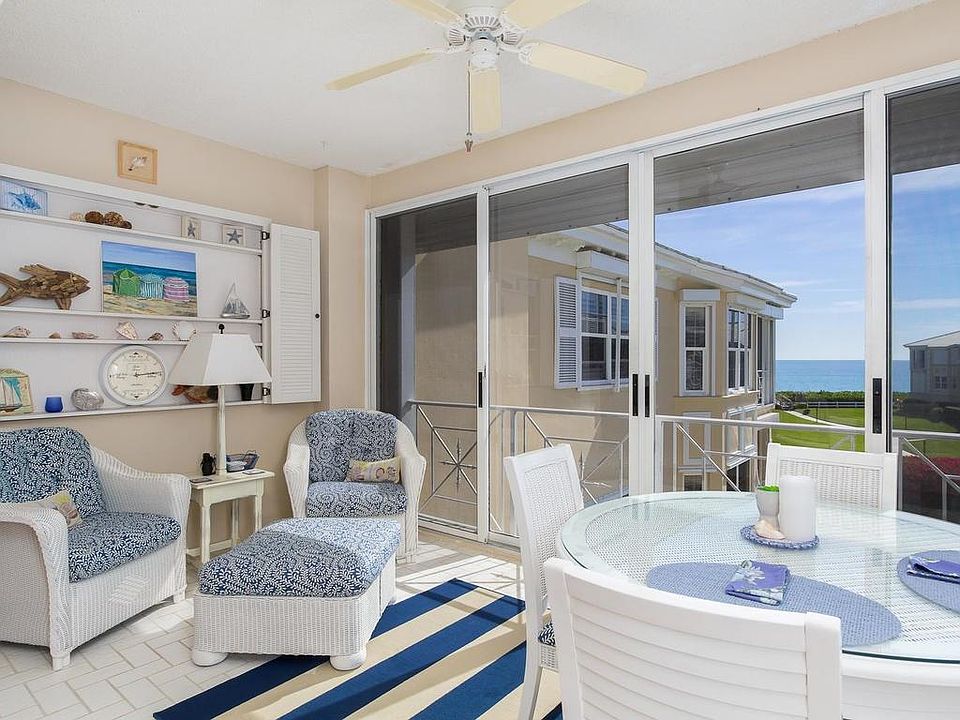 Bright and comfortable top floor condo with ocean views. Full corner with no common walls. PGT impact resistant windows and electric shutters on glass sliders. Enclosed porch, 2-car garage (tandem), secured lobby entry, and extra storage room. Residents of Sabal Reef condos enjoy a community pool, clubhouse, and access to The Moorings private beach. Dimensions approx/buyer to verify.
