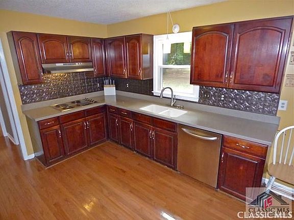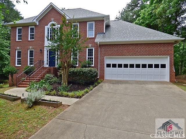 Priced right in North Oconee School Zone! Spacious 4/2.5 with large secluded lot set above the street for maximum quietness. 5 minute drive to Trader Joe's, The Loop, and beyond, yet very quiet and peaceful. Low maintenance all brick/hardiplank exterior with roof replaced in 2014, new hot water heater installed in 2014, updated mechanicals, kitchen with small sitting or eat-in area (stainless appliance package!), massively tall garage for maximum shelving/storage, Formal Living Room and Dining Room up front with family room in back of home. Family Room has wood burning fireplace. Back door walk-out access to railed deck overlooking a huge flat lawn area with woods beyond. Storage Closet out back for garden equipment. Veggie Boxes! Large master with double vanity, garden tub, separate shower and private toilet. Lots more to see so plan a visit like now...Easy to show and ready to go.