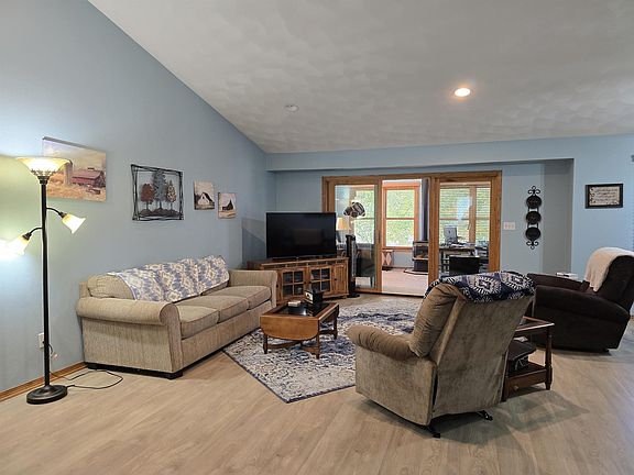 Beautifully updated end unit condo on fantastic corner lot! Open floor plan offers vaulted ceilings that enhance the living/dining room! Sliders lead to a comfortable 4 seasons sun room w/new carpet & gas stove for extra warmth! The large eat-in kitchen comes with all new appl's, there's a 1st floor laundry w/new W&D, & primary suite w/WIC & full bath. The partially exposed LL offers a finished 'L' shaped rec-room w/potential for additional Br space if needed. New GFA, C/A, water heater, water softener, & new carpet in both Brs.