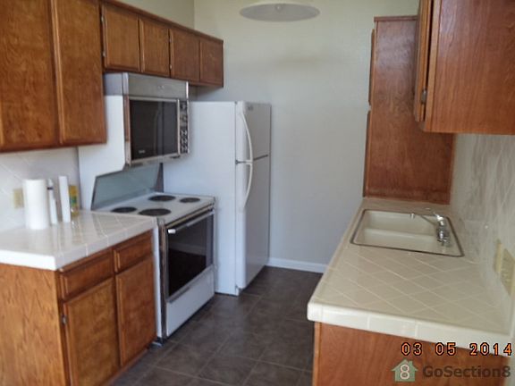 Great gated community close to shopping and transportation. Two parking spaces, pool, spa, club house. New interior paint, new tile flooring and new tile counters. Move in ready. Appliances included, dishwasher, stove, refrigerator, washer and dryer. For more properties like this visit GoSection8.com.
