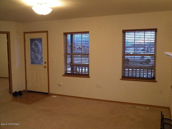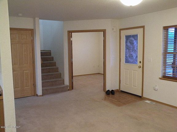 This is a nice 2 story 3+ bedroom, 2.5 bathroom home near Palmer. Has an office that could be used as a 4th bedroom. Nice sized kitchen with pantry, dishwasher, breakfast bar, microwave. Large living room with fireplace. 3 bedrooms all upstairs with large master, with great mountain views and lots of windows. Front deck, large landscaped yard. 2 car garage, pet on approval dogs