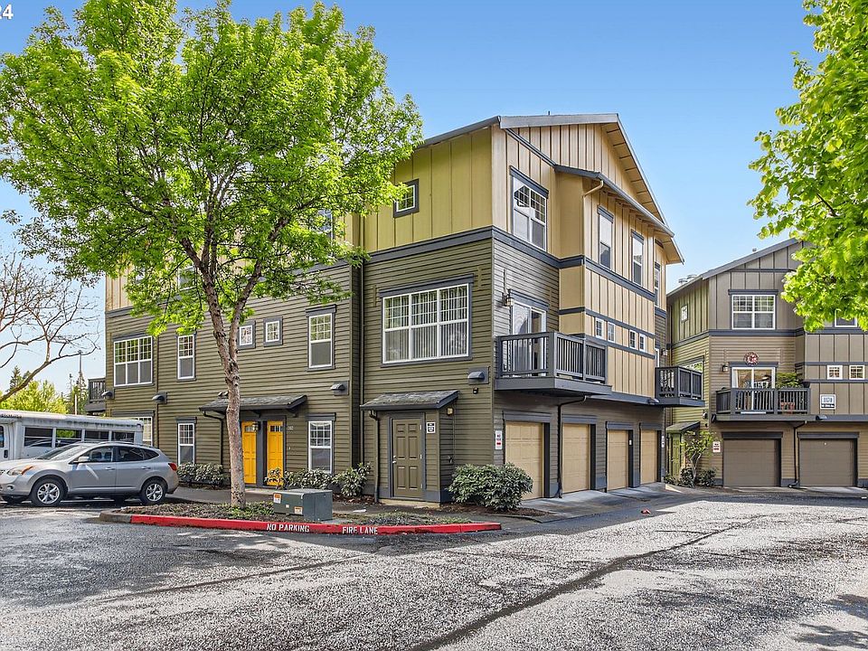 Welcome to your own townhome-style condo in the heart of Beaverton! Nestled in a central location, this condo offers the perfect blend of convenience + comfort. Discover an inviting, open concept floor plan w/new carpet + original hardwood floors throughout. Living room includes tiled gas fireplace + built-in shelving. Kitchen complete w/granite countertops, island w/eat-bar, + stainless steel appliances. Dining room adjacent to kitchen w/slider leading to deck. Upstairs you'll find two generously sized bedrooms, each with its own bathroom plus separate laundry area. Attached garage w/direct access. Embrace the vibrant community w/easy access to many amenities. Nature enthusiasts will love the proximity to Tualatin Hills Nature Park, while shopping, restaurants, entertainment options + major employers abound nearby. Close proximity to Elmonica/SW 170th Max Station, making travel a breeze. HOA includes exterior maintenance, sewer, trash + water plus community playground. No rental cap.