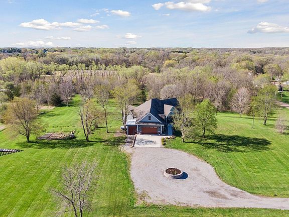 This 2015 built rambler sits on almost 10 acres just outside the city of Mound. The property offers an open main level with three bedrooms and walkout access from the kitchen to the covered deck with beautiful long views. Retreat to the primary bedroom that features a tray ceiling, two walk-in closets and bathroom with separate tub and a tiled shower. The junior bedrooms share a full jack-and-jill bath. The kitchen features high-end stainless-steel appliances, hardwood floors and a large center island. The two-sided stone fireplace separates the formal dining room from the living room. There is a main floor office and guest bath just off the foyer. The laundry room is conveniently located and features built-in lockers and has ample storage. Heated floors throughout the lower level with two bedrooms, family room, amusement room and plenty of storage. Don’t miss the bonus room tucked away on the upper level. Easy county living with proximity to shopping, restaurants, and schools.