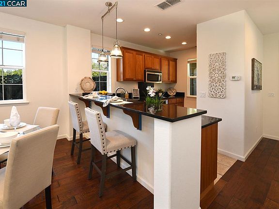 Welcome home to this contemporary turn key home built in 2007 which offers 3 bed /2.5 bath 1566 sq ft . with sophisticated upgrades throughout.You will find fresh interior paint & new carpets upstairs. Downstairs boasts wood floors along with a spacious open light filled floor plan with a wall of windows and a gas fireplace. A chef's kitchen and a a large breakfast bar makes this kitchen the center of the home.The great room / family room opens to the back patio perfect for entertaining & everyday living. Master bedroom boasts a separate tub & separate shower & separate W.C. dual sinks & HUGE walk in closet.Custom window coverings along with dual A/C system & upstairs laundry room make this home one of a kind. 1150 Trailside Circle is walking distance to Concord Bart. It is a great commute location to shopping , trails , freeways , Walnut Creek , Pleasant Hill & downtown Concord. It also offers a finished 2 car attached garage .