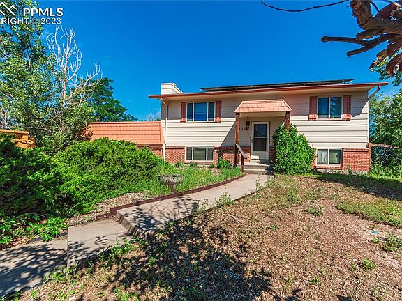 Come take a tour of this lovely 4-bedroom, 2-bathroom, 2 car garage, Bi-Level in a cul-de-sac, using our 3D Virtual Tour! This home is in a great location with stunning balcony views! Situated in the Holland Park neighborhood, near major cross street Centennial Blvd., this property is near tons of amenities to include grocery, restaurants, shopping, medical, fun leisurely spots such as Holland Park, Jackson Park, and Douglas Open space, along with nearby scenic Garden of the Gods, and awesome attractions like the Space Foundation Headquarters, and Pro-Rodeo Hall of Fame. This home is also close to the highway and just a quick drive to our local military bases. Inside, you’ll find an appealing bi-level layout, with an upper level living area, 2 bedrooms to include the master, a bathroom, and the kitchen. Kitchen has ample cabinetry and nice space, with back balcony access. The awesome balcony is large, with amazing entertainment options, and best of all, those beautiful Pikes Peak views! Lower level offers another living space with a cozy brick fireplace, 2 additional bedrooms and a bathroom. Head out to a huge backyard with great entertaining potential, garden options and more. The yard is fenced and offers a shed, and garage access. Another huge plus is the solar panels! Completely paid off. Never worry about your electric bill! This home is just waiting for some TLC inside and out. With its amazing location, great balcony, and breathtaking views, this is one you won’t want to miss!