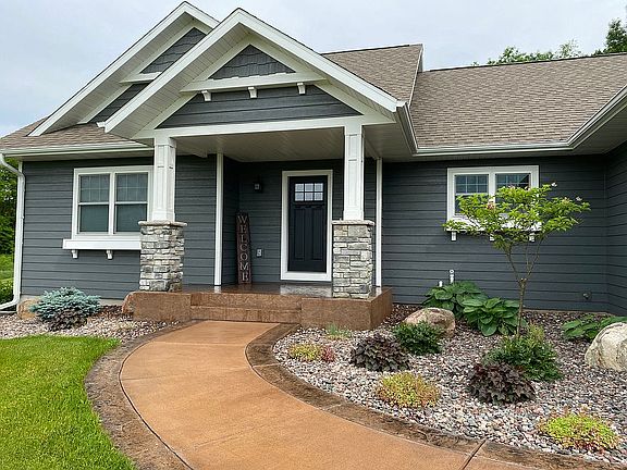Located only 25 minutes south of Eau Claire, WI. This 5 bed, 3 bath home has 3,200 finished sq ft. Geothermal heating/cooling, in-floor heat in basement and garage, sprinkler system, LP Smart Side Diamond Kote siding, upgraded white trim package, granite tops in kitchen, custom cabinetry throughout, farmhouse sink, owners suite with large bathroom and walk-in closet, mudroom cubbies, main floor laundry and SO much more! Over 2 acres and a beautifully landscaped yard. Huge swing set and sandbox for the kids to enjoy. PLEASE NOTE - Zillow has incorrect tax information listed. Yearly taxes are $6,300.