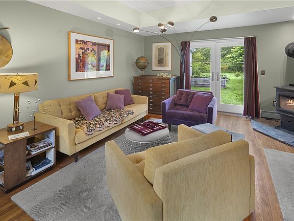 Come take a look at this private, spacious, and charming 2 bedroom, 1 bathroom Ranch in Newfield, adjacent to Finger Lakes Land Trust Forest in the Emerald Necklace of Ithaca. Inclusive of both masonry and frame construction, this property has classic finishes paired with rustic flare. Numerous noteworthy bonus spaces exist on the property including an artist studio, a workshop, raised garden beds, a sunken fire pit in an old foundation, and an outdoor wood fired Sauna house. From the whimsical finishes to the extra living spaces, this turn key home is not to be missed. Easy access to Hundreds of acres in the Cornell University Arnot Forest.Just 20 minutes from DT Ithaca, and an easy commute to Cornell and IC.